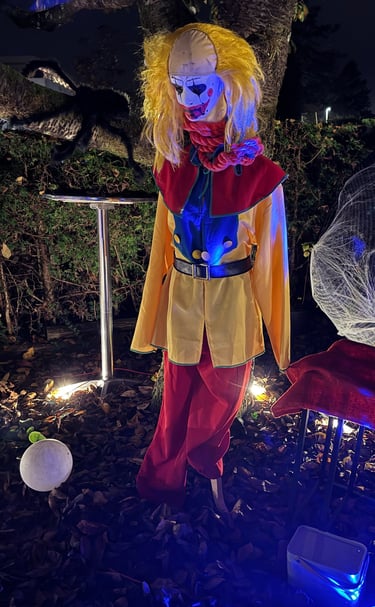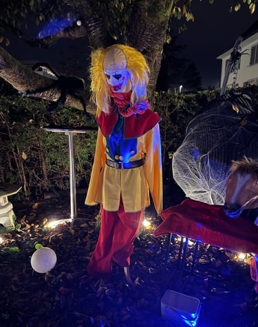 Was ist das Geräusch?! Ein Hexenlachen! Eine Clownsfratze!